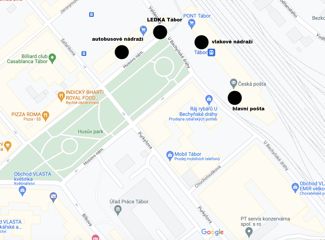 Komunikace: ulice / parkoviště / pěší zóna / křižovatka / vlakové nádraží / autobusové nádraží